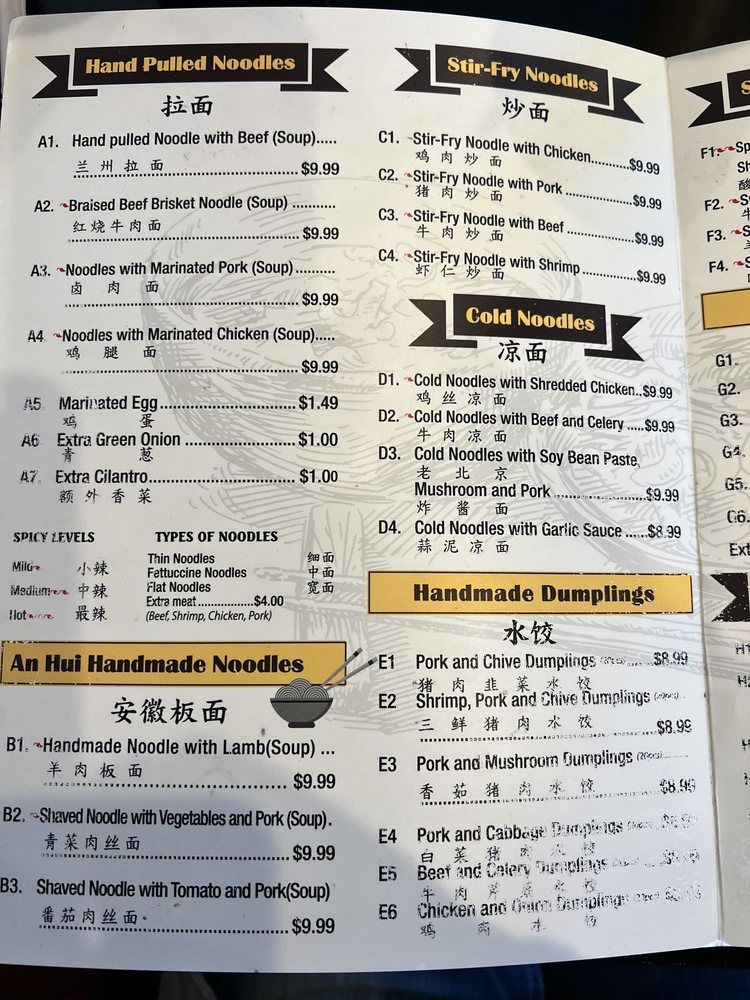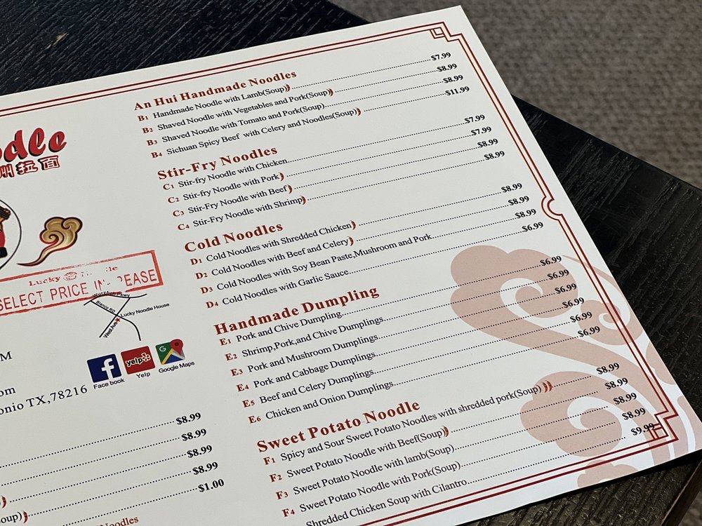 Lucky Noodle, located in San Antonio, TX, offers a variety of Chinese noodle dishes, hot dishes, and soups. Customers praise the hand-pulled noodles for their chewy texture and the flavorful broth. The menu includes options for vegans and vegetarians, along with traditional Chinese dishes like beef brisket noodle soup and marinated pork noodle soup. The ambiance is casual and great for families, with fast and friendly service. Some customers mentioned the generous portion sizes and budget-friendly prices. Overall, Lucky Noodle is a great spot to enjoy authentic Chinese cuisine in a relaxed setting.